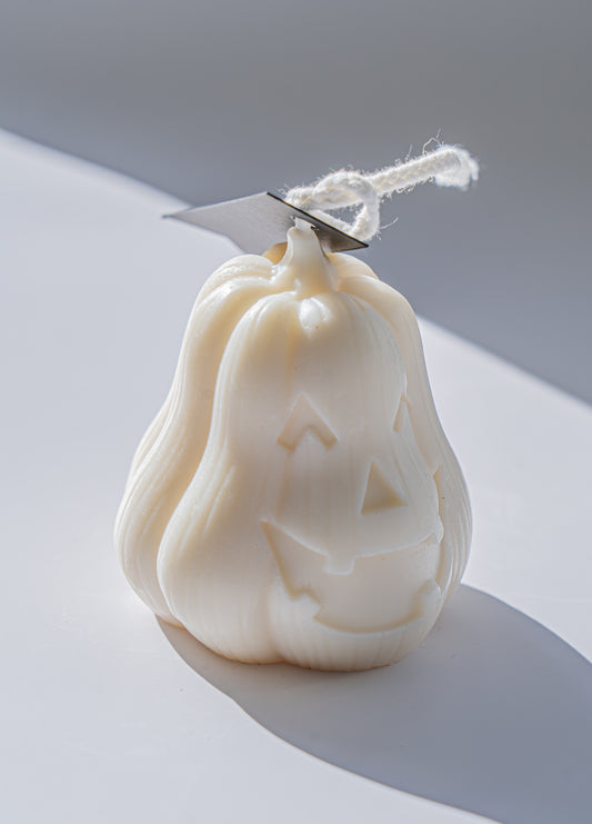 Längliche Kürbiskerze – handgegossen & perfekt für herbstliche Dekoration.